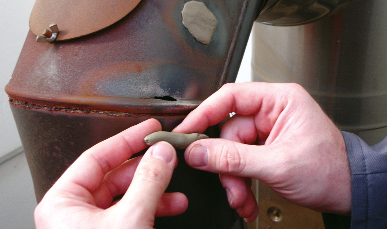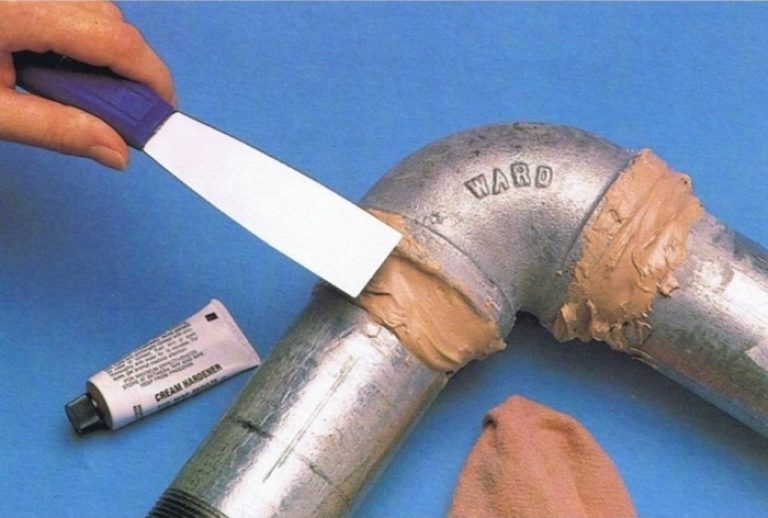 Separate Klempnerarbeiten. Die Zusammensetzung des Leims ermöglicht die Reparatur von Schäden auch bei einem Überschuss an Wasser auf der Oberfläche, was die Kosten für die Reparatur des Heizsystems und der Rohrleitungen erheblich reduziert.Die Hauptqualität der Reparaturen, die auf diese Weise durchgeführt werden, ist ihre Haltbarkeit. Sie können keine Angst haben, dass die Flecken auf den Pfeifen nicht leben, um die Heizung und das Ende der Saison auszuschalten.