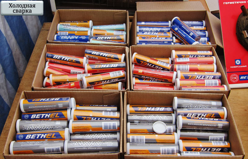 Kaltschweißen ist eine spezielle Art von Leim, der in kurzer Zeit aushärten kann und Reaktionen mit Motoröl oder anderen brennbaren Elementen eines Autos vermeidet. Klebstoff haftet gut auf einer Vielzahl von Metalloberflächen.