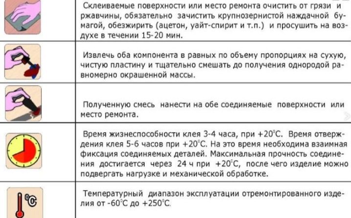 Perfekt eignet sich dieser Kleber auch für die Reparatur von Möbeln im Garten oder Garten. Sie sollten nicht nur Schäden an Gasbehältern und -kanistern mit brennbaren Substanzen reparieren, da diese oft pulverförmigen Stahl enthalten, der statische Funkenbildung und Entzündung verursachen kann.