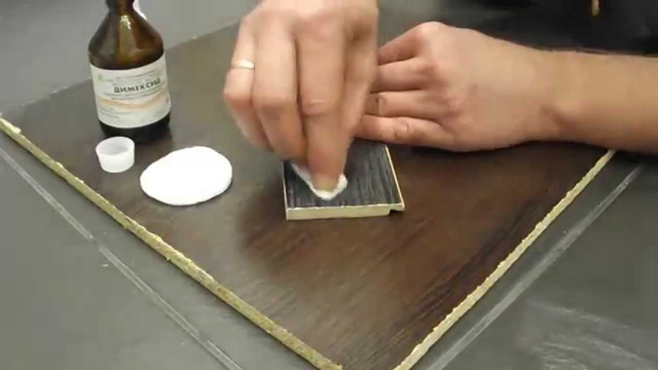 In Fällen, in denen die Oberfläche mit einer Lackschicht bedeckt ist, sollte Aceton nicht verwendet werden. Die Verwendung von Dimexide kann auch den Lack beschädigen, so dass es lange dauert, sie mit Seife und Wasser zu reiben, um lackierte Oberflächen zu reinigen.