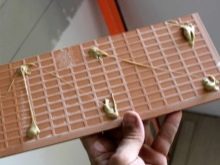 - Es ist notwendig, die Elemente für 10-15 Minuten fest zu drücken und zu fixieren. Während der Kleber trocknet, können Sie Abdeckband oder spezielle Befestigungselemente verwenden.