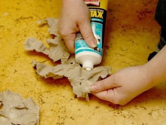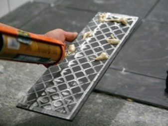 - Es sollte auf eine der Oberflächen der Klebemasse aufgetragen werden. Es gibt verschiedene Möglichkeiten, dies zu tun. Zum Beispiel eignet sich die Spot-Beschichtung für unebene Oberflächen. Die Größe der Klebepunkte beträgt ungefähr 2x2 cm, der Abstand zwischen ihnen beträgt 20-30 cm Eine andere Methode ist eine Wellenlinie, die bei der Montage von Materialien einer großen Fläche bequem zu verwenden ist, wenn die Primäreinstellung zunimmt.Kleber wird auf kleine oder schmale Elemente einfach mit einem geraden Streifen aufgetragen. Während der Arbeit mit einigen Arten von Leim ("Universal", "Für Platten") ist das Zeichnen mit der Walze möglich. Diese Methode ist praktisch beim Kleben von glatten und glatten Materialien, besonders bei großen Formaten. Die Kellenmethode wird verwendet, um einen grßeren Kontakt der Oberflächen und eine fast augenblickliche Haltekapazität zu erzeugen. Der Kleber wird mit einer Zahnkelle (Kerbtiefe 0,6 cm) über das Material verteilt und 2,5 cm von den Kanten entfernt.