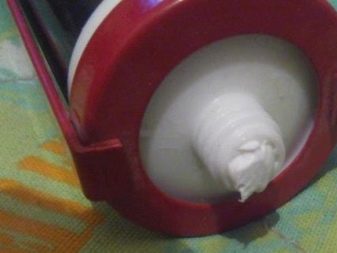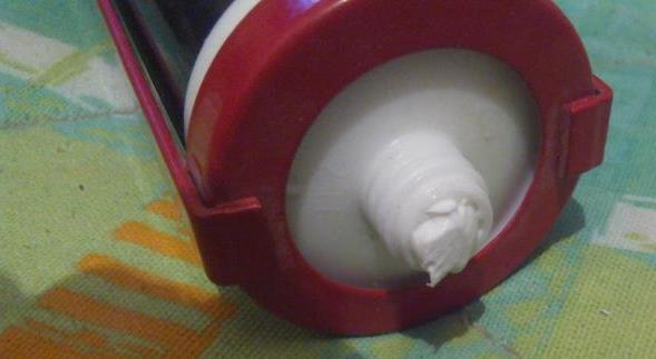 - Es ist notwendig, die Schutzdichtung von der Kartusche abzuschneiden, dann die Spitze aufzusetzen und in einem Winkel von 45 ° das Ende auf den gewünschten Durchmesser abzuschneiden. Nach dem Einsetzen der Patrone in die Baupistole. Drücken Sie dazu auf die Verriegelungslasche, ziehen Sie die Stange heraus und setzen Sie die Patrone in den Pistolenkörper ein. Hängen Sie den Stab zurück auf die Scheibe, die auf dem Boden des Zylinders ruht. Nach ein paar Klicks auf den Auslöser kommt der Kleber heraus. Um den Klebstofffluss zu stoppen, müssen Sie auf die Verschlusslasche drücken, wodurch der Druck in der Kartusche leicht reduziert wird.