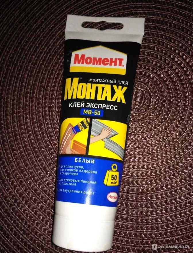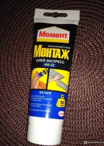 - "Express MB-50". Dieser Klebstoff gehört zu der Gruppe der Acrylate, wie die Verringerung der MB zeigt. Daher ist es perfekt für die Arbeit mit verschiedenen Rohstoffen wie Holz, Metall, Kunststoff, Gips, Keramik und so weiter. Es kann für externe und interne Arbeit verwendet werden. Dieser Kleber wird bei der Installation von dekorativen Produkten, der Installation von Sockelleisten und Fensterbänken verwendet. Das einzige, was bei der Arbeit berücksichtigt werden muss, ist eines der zu verklebenden Materialien, das gut Feuchtigkeit absorbiert.