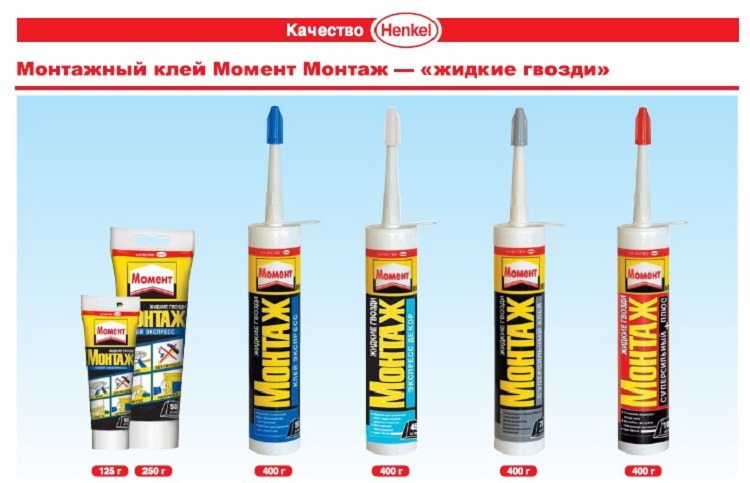 Der Umfang der Flüssignägel "Moment Installation" ist sehr breit.