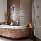 Von den offensichtlichen Nachteilen - dem hohen Preis, zeitraubenden Verlegeverfahren, sowie einem speziellen Material zum Verkleben - ist Spezialkleber. Manchmal kann sich ein Mosaik einfach verstecken. In diesem Fall, entfernen Sie es oder wiederholen Sie es wird sehr schwierig sein. Im Vergleich zu dem Ergebnis, das mit einer vernünftigen Herangehensweise an die Wahl von Design und Styling erzielt werden kann, treten diese Dinge jedoch in den Hintergrund.