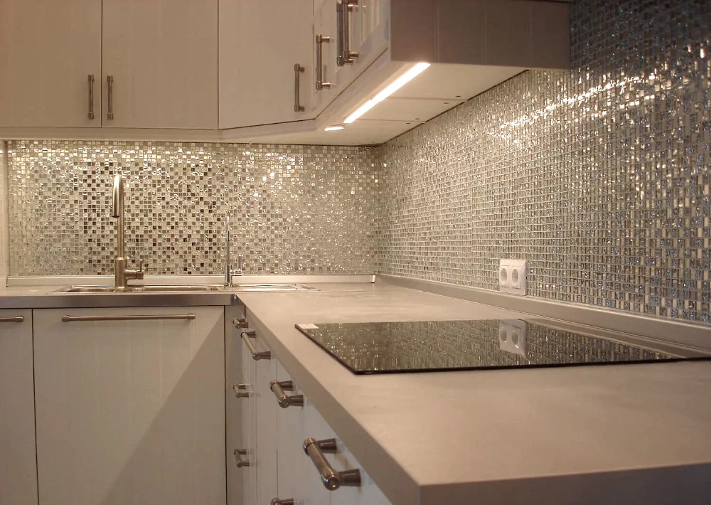 Die meisten Mosaikprodukte bestehen aus Glasvarianten, da Glas das praktischste und leicht verarbeitbare Material ist. Produkte aus diesem Material bieten viel Raum für Fantasie und Design. Glas kann jede Farbe erhalten. Es hat einen glänzenden Glanz in Verbindung mit Reinheit und Ordnung. Solches Material erfordert keine besondere Pflege, reagiert nicht mit aggressiven chemischen Verbindungen.