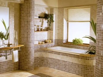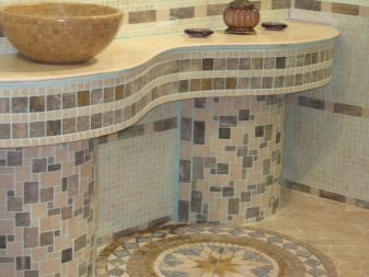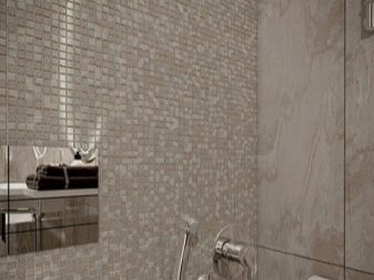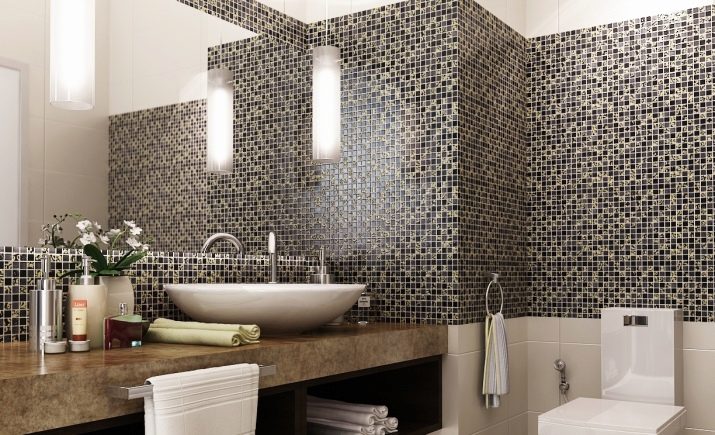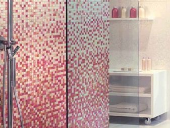 Glasmosaik ist am besten für die Dekoration von Badezimmern - es ist ziemlich praktisch und sieht elegant aus.Im Inneren eines modernen Stils sind warme Beige-, Milch-, Hellrosa-, Braun- und Grüntöne angebracht. Interessante Optionen werden die Glasmodelle Coffee, Fantasy, Dream Beige, Flamingo, Freizeit, Gold Stream, Liberty sein.
