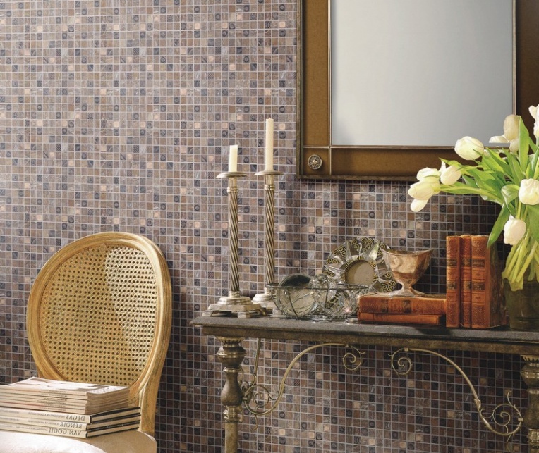 Mosaike aus Naturstein können sogar den voreingenommenen Gast überraschen. Für die Fertigstellung der ganzen Wand passen Modelle Barcelona, Ferato, Kolizey, Toledo, Sevilla - Dies ist ein solides Mosaik, das in Form einer einfachen Leinwand oder eines einfachen Panels gut aussieht.