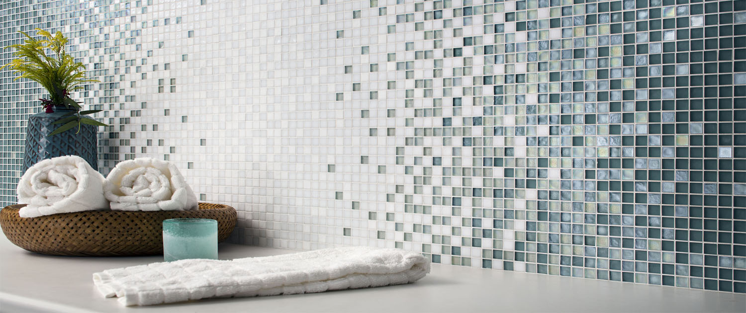 Eine weitere Möglichkeit, Mosaike richtig und schön zu verlegen, ist der Kauf von Dehnungsstreifen - das sind bereits fertige Leinwände, die aus mehreren Blättern bestehen. Das Hauptmerkmal von Dehnungsstreifen ist der Farbübergang von einem dunklen Farbton zu einem hellen Farbton. Bonaparte bietet Modelle wie Spring Blau, Spring Grün, Trek.