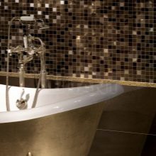 - Keramik. Es kann die jüngere Schwester der gewöhnlichen Keramikfliesen genannt werden. Die Farben und das Aussehen eines solchen Mosaiks variieren stark. Seine Oberfläche kann "gealtert" werden - Risse und Flecken werden nachgeahmt. Die keramische Stärke des Mosaiks ist sein Vorteil. Geeignet für den allgemeinen Gebrauch.