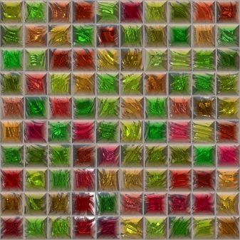 Mosaikelemente haben viele Namen (Module, Chips, Tessera). Ihre häufigste Form ist quadratisch, aber es gibt auch andere Formen. Das Detail des Mosaikbildes hängt von der Größe von Tesserov ab. Je kleiner sie sind, desto klarer sind die Linien und desto genauer ist die Zeichnung.