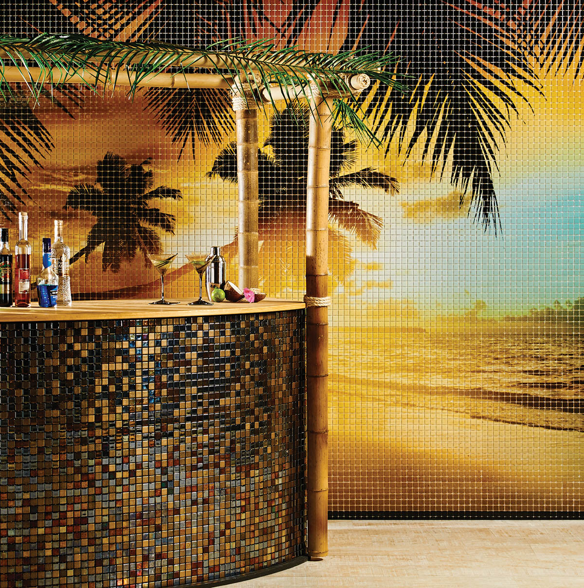 Mosaik Düne es unterscheidet sich sowohl in einer atypischen Form von Segmenten als auch in einer großen Anzahl äußerer Effekte: von der Oberfläche "unter dem Baum" bis zu den Buntglas-Leinwänden.
