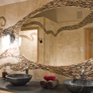 Smalt kann Wände, Böden, Säulen, Türen und Treppen furniert werden. Mosaik passt gut zu anderen Oberflächen.Die hohen Kosten von Mosaik smalt sind auf die manuelle Arbeit und die Eigenschaften des Materials zurückzuführen, aber das ist es, was es entzückend macht. Darüber hinaus ist es fast ewig, erfordert keine Restaurierung und Pflege und seine Schönheit wird viele Generationen erfreuen.