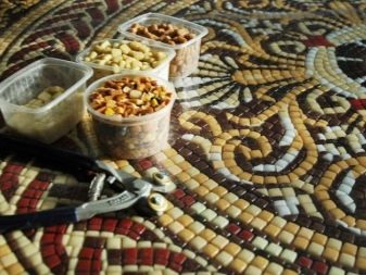 Wenn der Wunsch besteht, ein Mosaik aus Smalt mit eigenen Händen zu schaffen, und es gibt niemanden, der den Meisterkurs belegt, werden wir versuchen, die Grundlagen der Arbeit mit diesem Material zu erklären. Es sollte daran erinnert werden, dass smalt ist Glas, das scharf ist, und seine ätzende ist gefährlich. Die Sicherheitsmaßnahmen bei der Arbeit mit Glaswaren sind dieselben wie bei Glasgeschirr - Sie müssen darauf achten, dass scharfe Späne nicht auf Möbel und andere Umgebungen fliegen. Die Anwesenheit von Kindern und Tieren ist zum Zeitpunkt der Herstellung nicht erlaubt. Die Arbeitsfläche sollte mit Wachstuch oder Papier bedeckt sein. Dann müssen Sie eine Schutzbrille und Handschuhe tragen und an die Arbeit gehen.