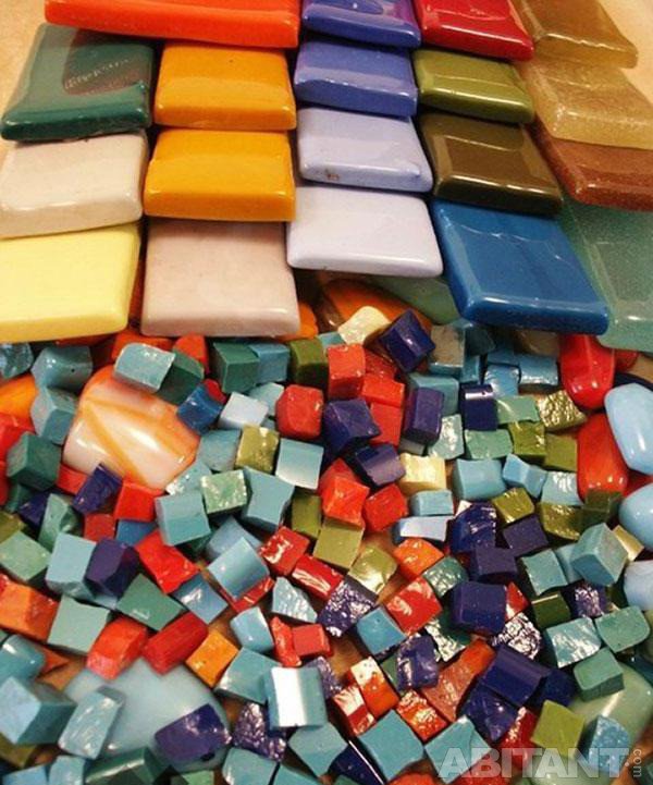 Smalt Tester haben nicht die gleiche Form und Größe, wie es bei Mosaiken anderer Materialien der Fall ist. Bei der Herstellung der Platten wurden kleine und große Chips unterschiedlicher geometrischer Proportionen verwendet. Dies können Teile mit rauhen und scharfen Kanten sein. Wenn das Produkt mit großen Elementen hergestellt wird, bricht seine unpolierte Oberfläche das Licht und sättigt das Bild mit unerwarteten Schattierungen. Mosaikplatten, die aus kleinen, polierten Teilen hergestellt wurden, stehen in ihrer künstlerischen Qualität den besten Beispielen der Malerei nicht nach.