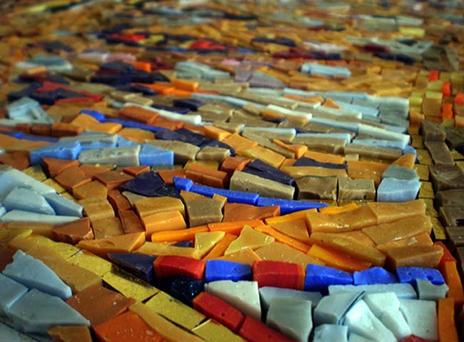 - Umkehrmethode Dabei wird auf der falschen Seite ein Mosaik ausgelegt, auf das anschließend der Klebergrund gegossen wird. Die getrocknete Leinwand sollte umgedreht werden und dann die Platzierung der Mosaikelemente überprüfen. Die zweite Art zu arbeiten ist schwieriger, aber mit ihrer Hilfe können Sie die ideale Ebene der Leinwand erreichen.