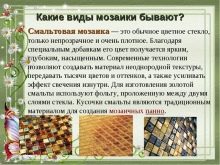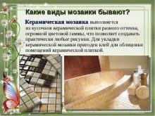 Sie können lernen, wie Sie eine mozayka mit Ihren eigenen Händen setzen, indem Sie auf das Video unten schauen.