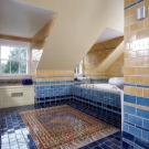 - Verwenden Sie Mosaikfliesen als Ersatz für Friese oder Bordsteine.Wände, Böden oder Decken und Zonierung, die die visuellen Grenzen einzelner Zonen bezeichnen.