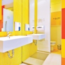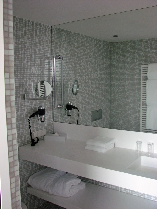 Die Böden sind mit hochfesten und verschleißfesten Stein-, Marmor-, Keramik-Granit-Fliesen, vorzugsweise im Großformat, belegt.