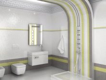 Die Mosaik-Streifen, die Designer im Inneren des Badezimmers so lieben, können auf verschiedene Arten verwendet werden: