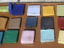 Dank der Zugabe von Cadmium, Perlmutt und anderen Materialien zu Glas, ist die Farbpalette in seiner Fülle von Schattierungen auffallend, die Anzahl der Farblösungen übersteigt 800, was es ermöglicht, Bilder zu erstellen, die in der Farbe komplex sind. Obwohl das optische Glasmosaik den Eindruck eines leichten und zerbrechlichen Materials erweckt, deutet seine beeindruckende Leistung darauf hin.