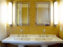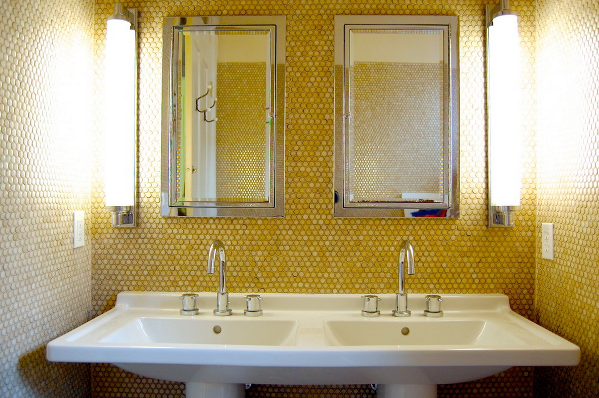 Nachdem Sie ein Spiegelmosaik für das Badezimmer gewählt haben, sollten Sie für die tägliche Pflege bereit sein, denn Irgendwelcher Schmutz eilt auf die glänzende Oberfläche. Bei matten Beschichtungen gibt es solche Probleme nicht.. Achten Sie außerdem darauf, eine spezielle Schutzmischung auf die Spiegelauskleidung aufzutragen, die verhindert, dass sie unter dem Einfluss von Feuchtigkeit dunkler wird und ihre Lebensdauer verlängert.