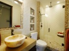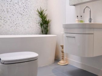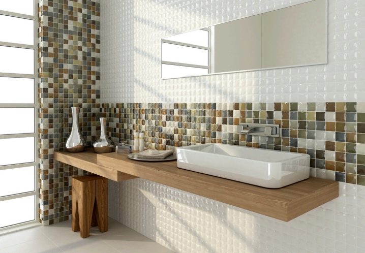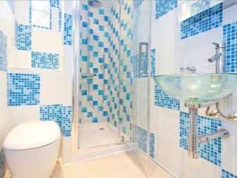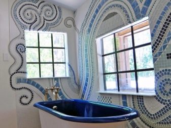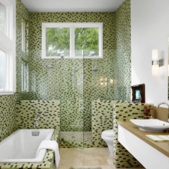 Solche Optionen für die Verwendung von Mosaiken - das ist eine große Chance, das Innere des Badezimmers zu individualisieren, so dass es sich von anderen unterscheidet.