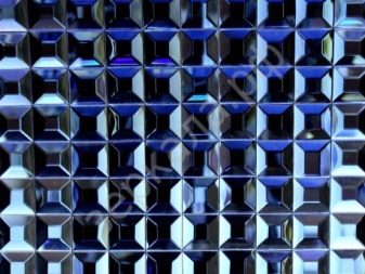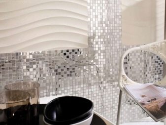 Es ist ein spektakuläres, umweltfreundliches, haltbares, hypoallergenes und haltbares Material. Diese Art von Mosaik produziert in Form von glatten Platten in verschiedenen Formaten, Farben und Größen. Der Vorteil der Spiegelverblendung ist eine illusorische Vergrößerung des Raumes, und dies ist besonders wichtig bei der Dekoration kleiner Räume. Sie können Spiegelelemente in großen Mengen kaufen oder bereits auf einem festen, flexiblen Netz oder Papierträger anbringen.