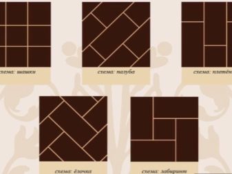 - Parkettmuster - Das Layout des Fliesenmosaiks, das fast jedem Finisher vertraut ist. Für eine Kachel mit rechteckigem Format wird das übliche Schema "Weihnachtsbaum" verwendet.während für Quadrat sie einen "Weihnachtsbaum mit einer Befestigung" - eine zusätzliche Aktivierung von kleinen Mosaikfliesen-Einsätzen verwenden.
