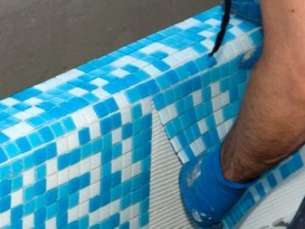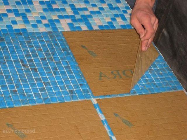 Wenn Fliesen verlegt werden müssen, müssen zusätzliche Stützen verwendet werden, um die Verwendung oder das Ablösen zu verhindern. Dies ist bei der Arbeit mit Mosaiken nicht erforderlich, jedoch unter der Bedingung, dass die Oberfläche gleichmäßig bearbeitet wird.