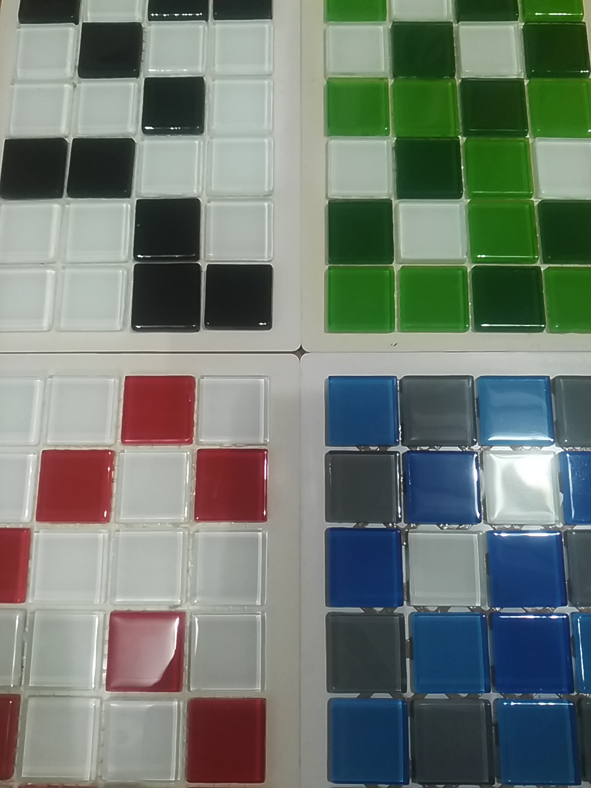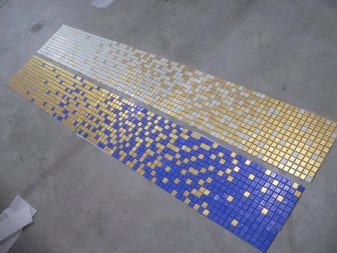 Um verschiedene Farbtöne im Produktionsprozess zu erzeugen, fügen Mosaikbeschichtungen färbende Oxide hinzu. Als Ergebnis können Sie neben dem Spiegelmosaik der traditionellen weißen Farben auch goldene, silberne oder schwarze Fliesen erhalten.