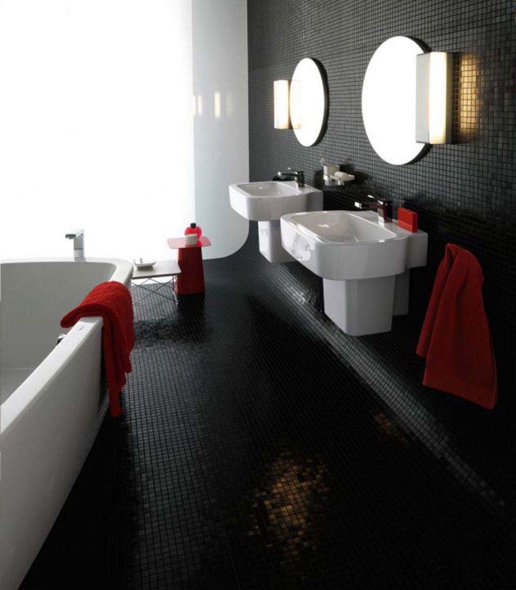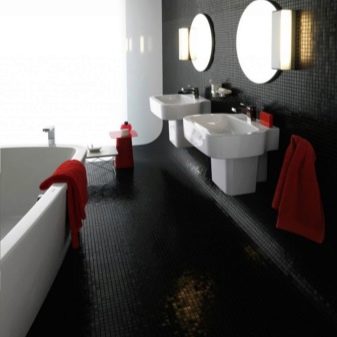 Die schwarz-rote Mosaikkombination für kleine Räume ist jedoch eine äußerst unglückliche Option. Wenn Sie dieses Farbduo so sehr mögen, dann ist es besser, sich darauf zu beschränken, eine kleine Platte aus roten und schwarzen Fliesen zu schaffen, indem Sie Fliesen mit neutralen Farbtönen als Rahmen verwenden.