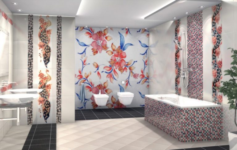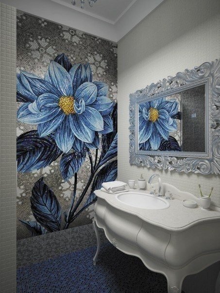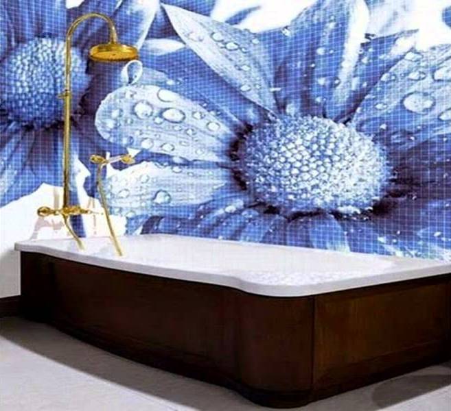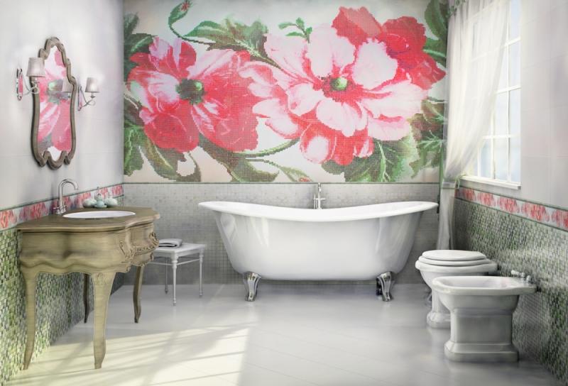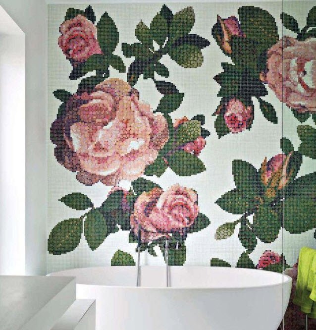 Einer der Hauptvorteile von Mosaikfliesen gegenüber herkömmlichen Fliesen ist die Fähigkeit, originelle Ornamente und künstlerische Bilder in den verschiedensten Farben und Schattierungen zu schaffen. Floristisches Thema ist eines der gefragtesten, denn Blumenmotive geben uns ein Gefühl der Einheit mit der Natur. Bunte Blumenpaneele verwandeln nicht nur die Innenräume der Badezimmer, sondern füllen die Atmosphäre mit der Energie von Entspannung, Gemütlichkeit und Komfort.