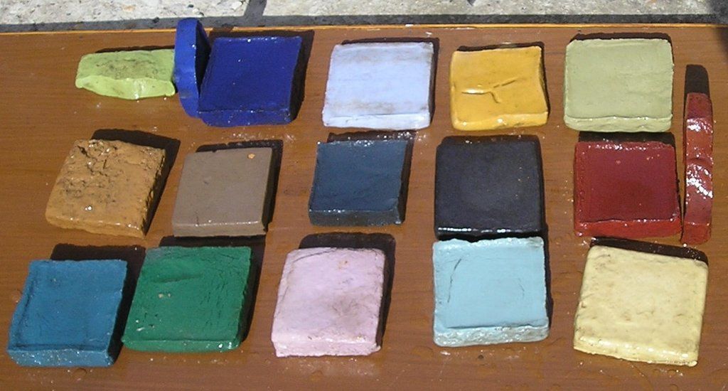 - Smalt Mosaiken. Bei ihrer Herstellung werden dem farbigen Glas Metalloxide zugesetzt, die im Vergleich zu herkömmlichem Glas eine erhöhte Abriebfestigkeit aufweisen.
