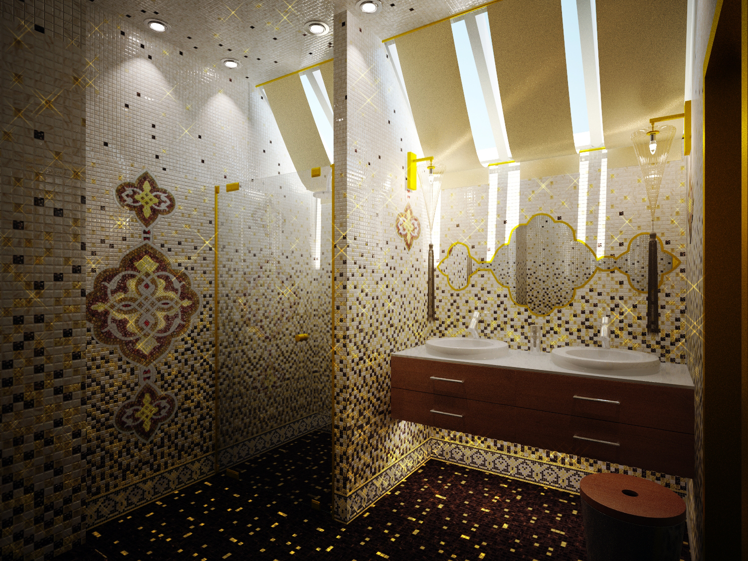Wenn es dosiert wird, um es mit Goldfliesen zu kombinieren, wird das Innere Glanz und Luxus erwerben.