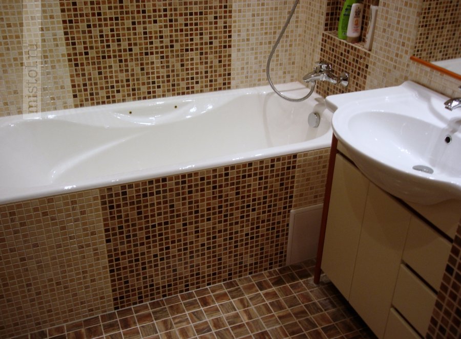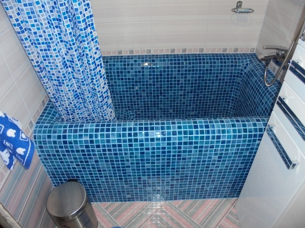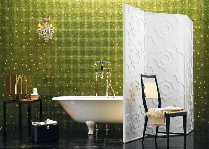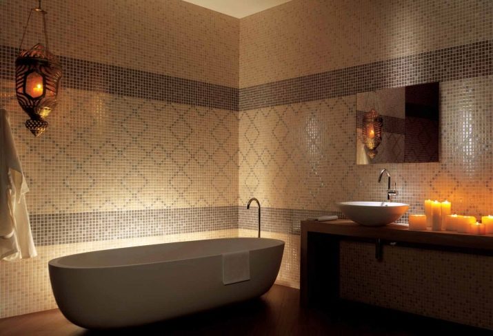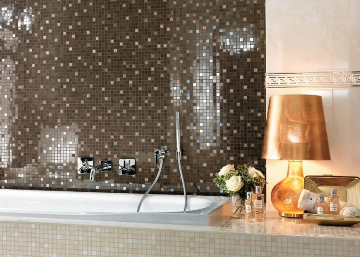 Die dekorativen, arbeits- und betriebsmäßigen Qualitäten des Mosaikflieses erlauben, mit seiner Hilfe die Vielzahl der ästhetischen und technologischen Probleme zu lösen. Es ist schwer zu widersprechen mit der Tatsache, dass das Badezimmer, komplett mit Mosaik ausgekleidet, einen unauslöschlichen Eindruck macht und einem raffinierten teuren Sarg ähnelt. In diesem Fall verwirrend, nur eine Sache - der Preis des Problems. Ein solches Design kann sich weh tun.
