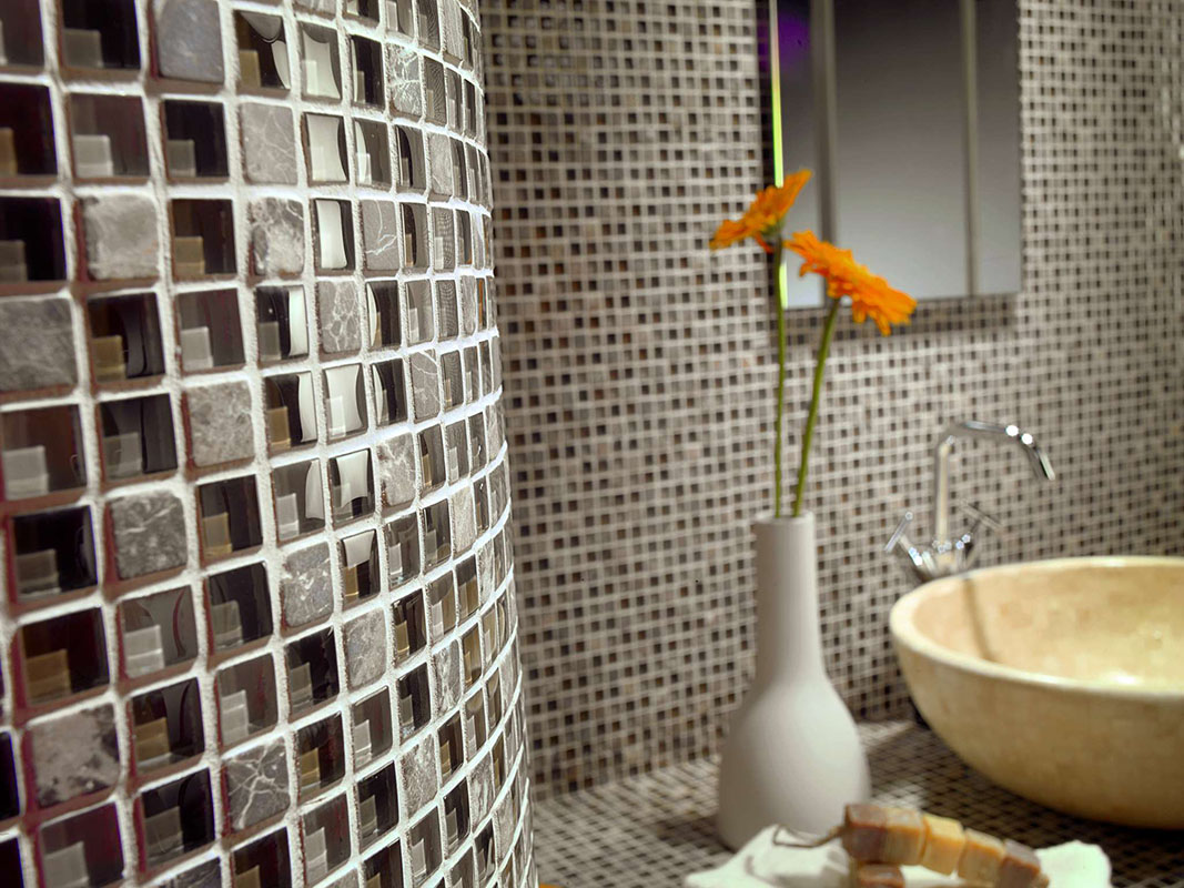 - Große Auswahl an DesignsFarb-, Textur- und Designlösungen, die die Auswahl des geeigneten Mosaikmodells für Badezimmer unterschiedlicher stilistischer Ausrichtung erleichtern.