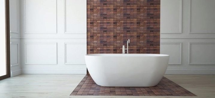 Die Vielseitigkeit der Holzmosaikbeschichtung beruht auf der Möglichkeit, den Wänden oder Böden gegenüberzustehen. Die Ausnahme sind Bambusspäne, denn Bambus ist kein Baum, sondern Gras bzw. aus ihm hergestellte Fliesen haben eine lockere, poröse Struktur, die anfällig für Feuchtigkeit, Dampf und schwere mechanische Belastungen ist.