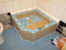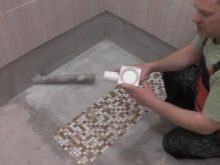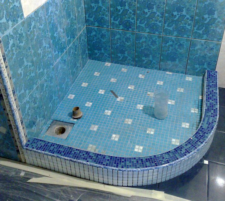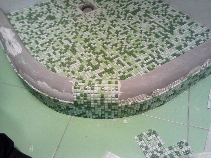 Wie man aus dem Mosaik mit eigenen Händen eine Duschwanne macht, siehe nächstes Video.