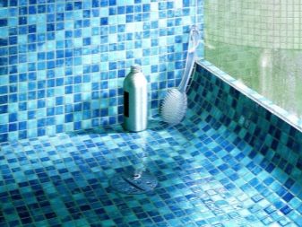 Diese Beschichtungstechnologie wird nicht nur auf den Boden und die Wände, sondern auch auf die Decke angewendet. Mosaik nach dem Setzen der Klebesubstanz ist eine viel widerstandsfähigere Beschichtung als selbst Fliesen. Im Gegensatz zu letzteren brechen die Mosaikelemente nicht und sind von der Basis viel schwieriger getrennt.