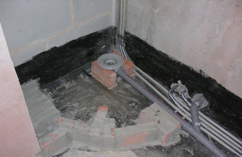 Dieser Arbeitsschritt beginnt mit der Vorbereitung von Arbeitsflächen, wenn die gesamte alte Beschichtung samt Estrich bis auf den Betonboden entfernt wird.Dann wird die erste Imprägnierschicht aufgebracht. Es besteht aus Kunststofffolie oder gummiertem Gewebe, das auf eine Bitumenschicht aufgebracht wird. Auf dieser Schicht können Ziegelwände verlegt werden.