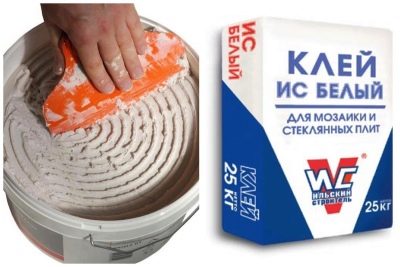 Für Putz- oder Gipskartonoberflächen wird Zementleim für Keramikfliesen des deutschen Ceresit-Typs perfekt passen. Für eine Holz- oder Kunststoffbasis ist besser Polymerkleber zu verwenden. Im Idealfall sollte das Mosaik auf dem Boden und dem unteren Teil der Wandfläche auf einem Zweikomponenten-Reaktivkleber aufgetragen werden, der eine hervorragende Ergänzung zur bestehenden Abdichtung darstellt.
