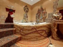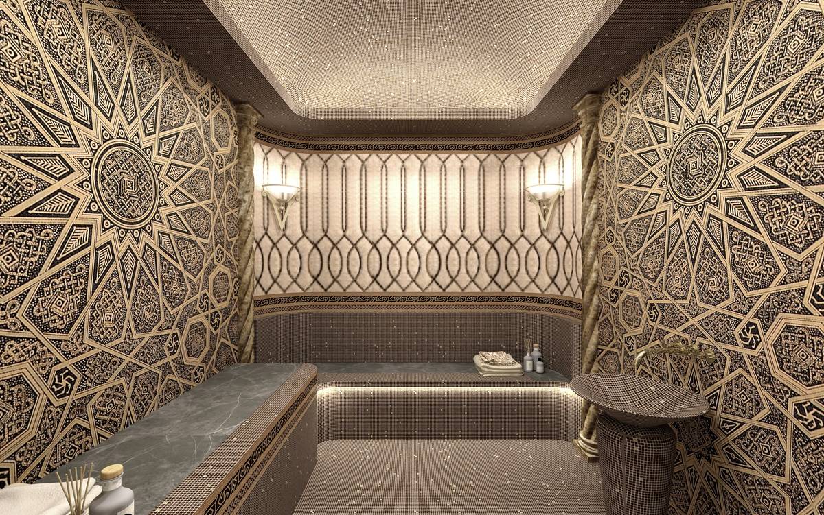Diese Qualitäten der Mosaikbeschichtung sind vor allem in Räumen mit hoher Luftfeuchtigkeit gefragt, wie in Badezimmern, Bädern, Saunen und Schwimmbädern. Einige Namen der keramischen Beschichtung, die an den allgemeinen Verbraucher vermarktet wird, sind für die Art der Verwendung des Namens geeignet, beispielsweise Hamam. Hamam ist der Name der türkischen Bäder, in denen sich eine bestimmte Art von Mosaikkunst historisch gebildet hat - Farbe und Reinheit, verdünnt mit orientalischem Geschmack, sind zu Legenden geworden.