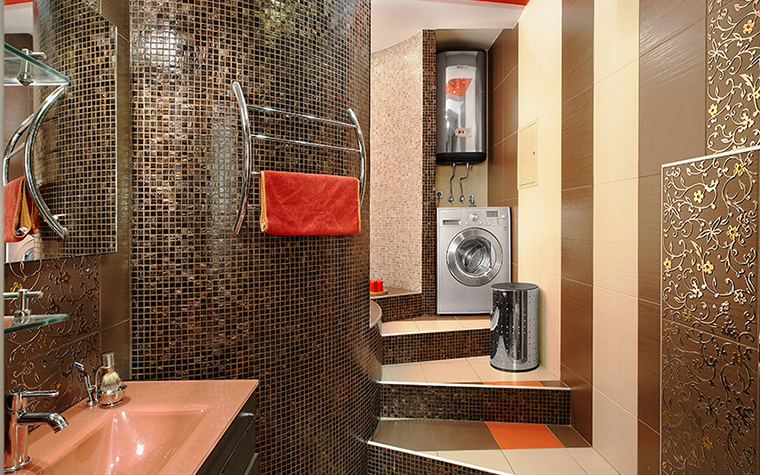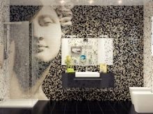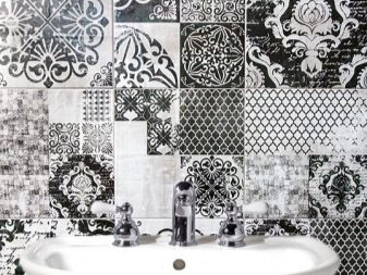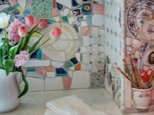 Die Inneneinrichtung von Badezimmern und Küchenräumen wird in Kombination mit mosaikartigen Leinwänden in satten Farben oder, im Gegenteil, in sanften Pastellfarben ausgeführt. Die Dekoration sollte vom gesamten Stil des Raumes abhängen und dem Stil der Möbel entsprechen. Wand- und Bodenbeläge werden in der Regel im gleichen Stil ausgeführt.