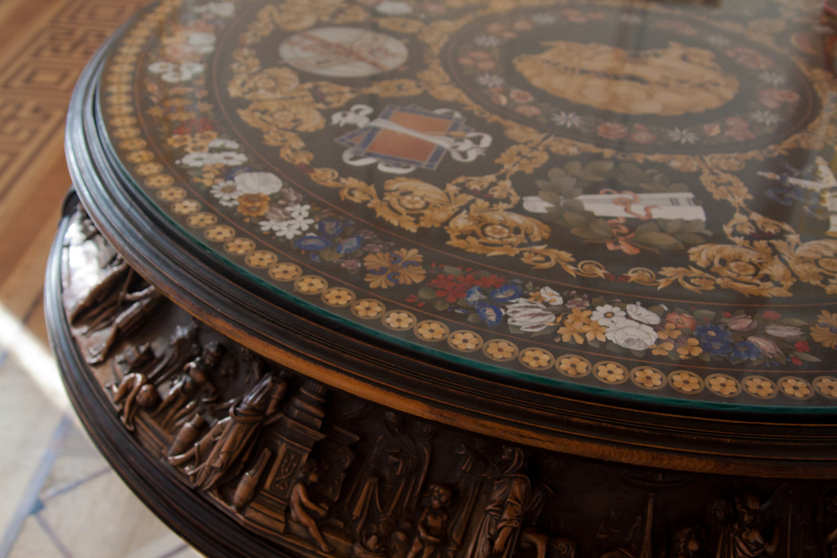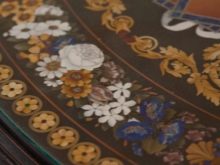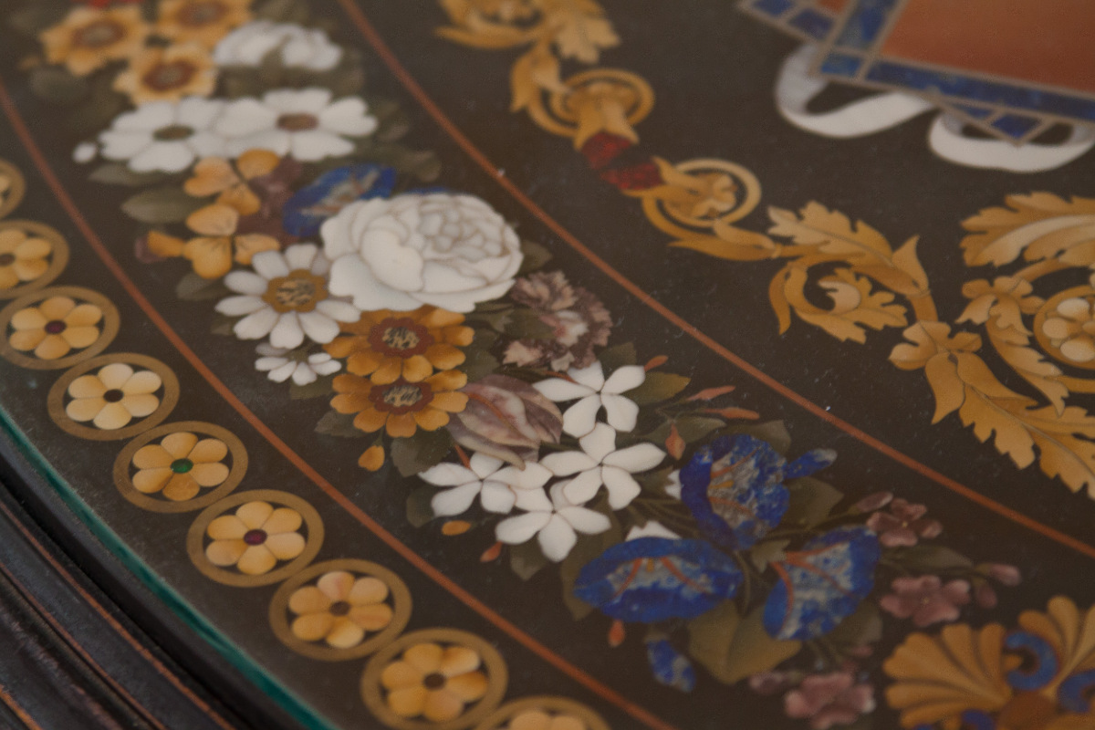 Am schwierigsten ist die Technik der florentinischen Schule, bei der natürliche Steinstrukturen verwendet wurden. Die sorgfältige Auswahl des Natursteinmusters und der von den Mosaikmeistern ausgeführten Schattierungen und die geschickte Kombination mit der perfekten Kombination zu einem einzigen Ganzen gaben den florentinischen Mosaiken einen besonderen Reiz, wobei die Natürlichkeit der Materialien harmonisch mit den Ideen des Meisters verbunden war. Das Mosaik verwendete Steine wie Tigerauge, Malachit, Achat und andere. Oft verwendet für die Inneneinrichtung des Mosaiks der wertvollen und Halbedelsteine und der Edelmetalle, besonders für das Dekorieren der Möbel und der Kamine.