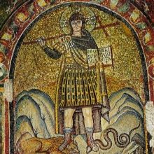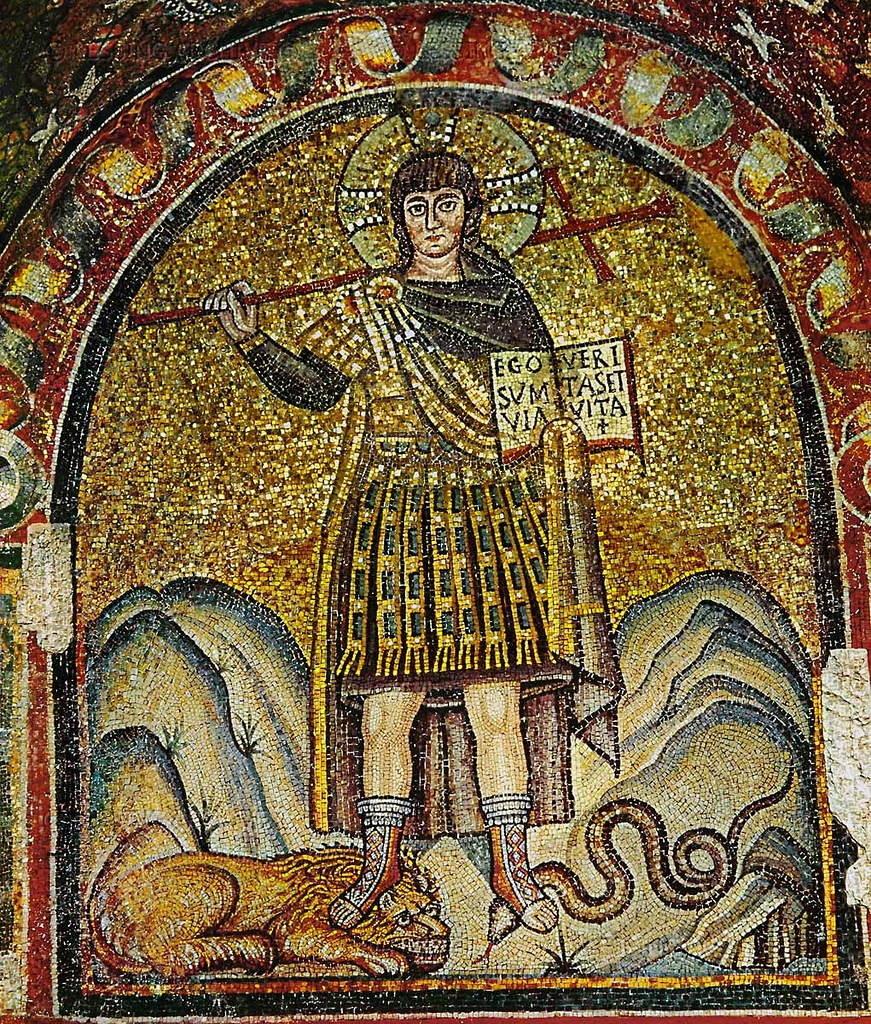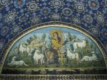 Die byzantinische Schule, in der die Ravenna-Mosaiken am bedeutendsten sind, basierte auf religiösen Überzeugungen. Es verwendete populäres in den farbigen Email- und Goldfliesen und gab den Mosaikarbeiten helle und satte Farben. In diesem Fall wurden die Goldplatten unter verschiedenen Neigungen platziert, was ein magisches Spiel von Licht und Schatten erzeugte.