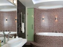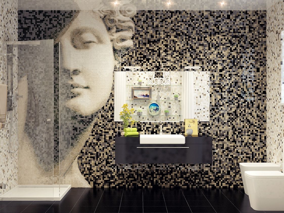 Das Badezimmer zeichnet sich durch Mosaikfliesen mit der Schaffung von mehrfarbigen Mustern und Mustern, die Stimmung zu verbessern. Sie können Kompositionen zu verschiedenen Themen erstellen, oder Sie können einfach die Farben variieren. Mit begrenzten Mitteln, wie Mosaikfliesen teurer als gewöhnliche Fliesen sind, können Sie mit Mosaiken nur eine Wand im Badezimmer dekorieren, was der sogenannte Raumakzent ist - das ist die Wand, die öfter gesehen wird, wenn Sie im Raum sind.Die restlichen Wände können mit gewöhnlichen Keramikfliesen verkleidet werden, gleichzeitig sollte das Grundtonicum mit der mosaikdominanten Farbe harmonieren.
