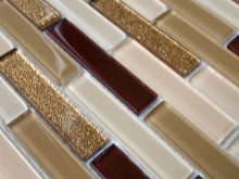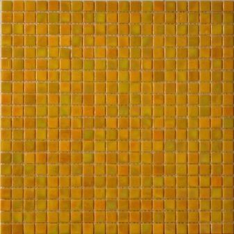 Mosaikglas wird industriell in Form von rechteckigen, 20 mal 20 mm großen Chips hergestellt und kann entweder in einem Satz einfarbiger oder mehrfarbiger Elemente vorliegen.