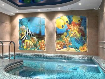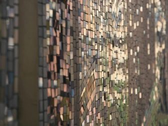 Die Schönheit von Mosaikbeschichtungen wird aufgrund der absoluten Feuchtigkeitsbeständigkeit und Dauerhaftigkeit der Beschichtung erfolgreich mit ihrer Zuverlässigkeit kombiniert. Daher wird das Mosaik als Verkleidungsmaterial für die Fassadengestaltung von Gebäuden sowie für die Fertigstellung von Räumen mit hoher Luftfeuchtigkeit verwendet.